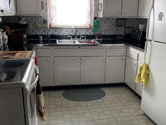 3 bedrooms, 1 on ground floor, open kitchen/dining rooms. Large open living room. Compact single bath with a tub only. Easily maintained yard with Garden Time storage shed. Needs some tlc, but very livable comfortably.