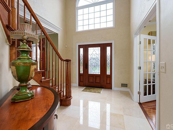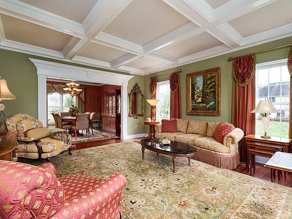 A thoroughly unexpected interior loaded with attractive architectural elements, beautiful wall coverings, and included window treatments, lies behind the brick faade of this South Brunswick jewel. A true slice of paradise in a neighborhood lined with sidewalks, this one ticks every box! A gracious front vestibule shows off marble floors and a chandelier with a lift for easy bulb changing and cleaning. The adjacent living room features coffered ceilings, Brazilian cherry floors, and broad fluted moldings, separating it from the adjoining dining room. The kitchen provides everything a home cook could want, from an island with seating to keep everyone in the conversation, to a large walk-in pantry for organizational excellence. Step outside to the backyard and large paver patio for that morning cup of coffee and take in the beautiful plantings that dot the large, level yard. A first-floor bedroom is one of five, served by a full first-floor bath. Upstairs, the main suite includes a custom bathroom, a sitting room with a see-through gas fireplace, and multiple closets for storage. The other three upstairs bedrooms share the third full bath in the hall. Throughout, storage is abundant, including in the full basement and the three-car epoxy floored garage, ensuring you'll never run out of space. There is also a whole house generator.