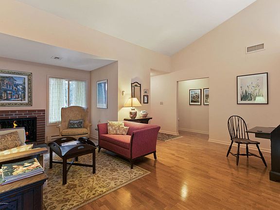 Wonderful Clinton Model features hardwood floors, two bedrooms, two baths, sun porch, plus den! Convenient attached garage with direct entry! Sunny unit with beautiful golf course views! Updated kitchen and baths renovated in 2004. Large rear brick patio and wood burning fireplace complete this great package. All units are going to be resided.