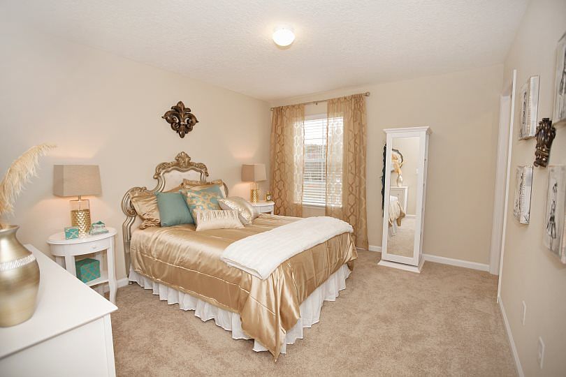 All the upgrades you want can be found in this beautiful 2-story home with stone and cedar shake accents. The 4-bedroom, 2.5-bath floor plan includes a main-level office and a family room open to the kitchen and breakfast area offering access to a screened lanai. The kitchen is designed with espresso stained cabinetry, granite counters, stainless steel appliances with gas cooking, and a center prep island with pendant lighting and room for dining. All of the bedrooms and a spare bath are located upstairs, along with a laundry room and a loft suitable for a den or play area. The master suite includes a deluxe bath complete with dual sinks, a deep garden tub with a picture window and an enclosed shower. Paver driveway adds a nice curb appeal to this home!