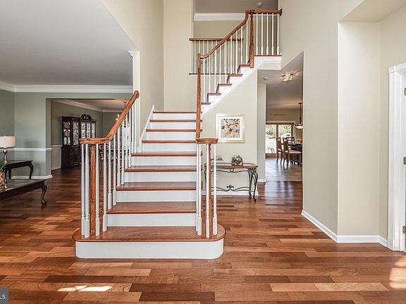 Situated at the end of a quiet cul-de-sac and backing to serene, treed land, this stately brick front home is the best of Bucks County living in a family-friendly neighborhood in sought-after Council Rock School District. From the sun streaming in to the two-story foyer to the rich Brazilian cherry hardwood floors, style and continuity are evident in every room. To the right of the foyer, a home office is located to offer quiet and convenience. To the left of the foyer, a peaceful front living room is ideal for morning reading or entertaining as it is followed by a spacious dining room with oversized windows looking into the back yard. Through the dining room, you enter the classic and thoughtfully planned kitchen. Large expanses of uninterrupted black granite countertops mean you'll never run out of prep space; center island with seating and a full pantry ensure you'll never run out of storage! The tumbled travertine backsplash is accented by stainless steel appliances and matching cabinet hardware and pendant lighting. The breakfast area opens to the yard via Andersen sliding doors and overlooks a soaring family room with vaulted ceiling, stone front wood-burning fireplace, and skylights. The flow between rooms is ideal and lends itself to entertaining both indoors fireside or outdoors on the expanded E. P. Henry paver patio, where you enjoy integrated lighting, long views of the yard, privacy, and a hot tub. The family room offers the convenience of a back staircase to the second story, where you will find four generous bedrooms which share an updated full hall bath with double sinks. At the far end of the upper level, the main bedroom suite is secluded and spacious, with pillars separating a sitting area from the rest of the room, and dual walk-in closets flanking the hallway into the large, neutrally-finished bathroom. Inside, quartz-topped vanities and a Jacuzzi tub make for a peaceful place of respite at the end of a long day. In the finished lower level, new carpeting freshens up the huge space, which is laid out with a dry bar for entertaining and ample room for both entertaining and the pool table. Just a moment's walk down the neighborhood sidewalks from Big Meadow Park, the home is also convenient to the association-provided amenities, including tennis courts, as well as the Village Shires shops and dining, commuting routes and more. More photos will be uploaded on Friday.