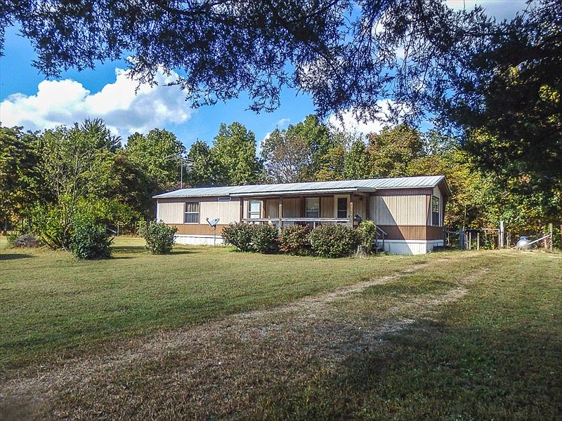 3 MINUTES TO BULL SHOALS LAKE AND BOAT LAUNCH For vacations, year around living or future retirement, this manufactured home on 4.6 acres offers lots of options! Very handy to Bull Shoals Lake, on paved road. Bright & airy, neat, open floor plan, vaulted ceiling, 2 bedrooms, 2 full baths, central heat and air. About 1/3 open, rest in trees.Neat, well-cared-for manufactured home has a very convenient location fronting paved road, but is set well back from the road for privacy. Open floor plan, living room with vaulted ceiling, breakfast bar separates the living room from the attractive kitchen & dining area. Lots of cabinets, range & refrigerator included. 2 bedrooms, 2 full baths. Utility alcove with cabinets, plus washer & dryer. Covered front porch is 16x8. Roomy covered rear deck 16x20 leads to the large, fenced pet yard &