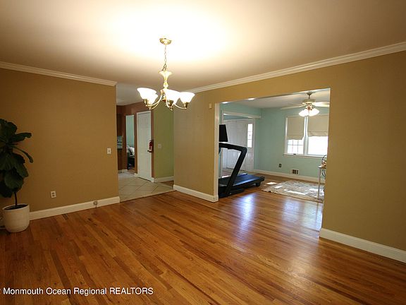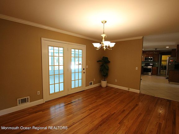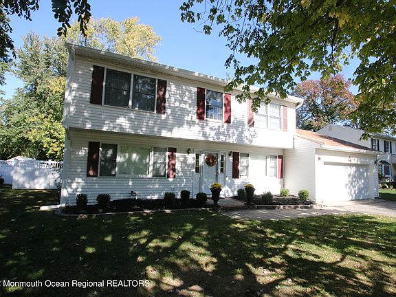 Classic Colonial on quiet tree lined street in the heart of Eatontown! Features foyer, formal living & dining room w/ hardwood floors and custom molding, updated eat in kitchen w/ wood cabinetry, granite counters, tile backsplash, stainless steel appliances and tile floor, cozy family room, enormous sunroom w/ wall to wall windows and lots of light, 4 generous sized bedrooms w/ wood floors throughout, 2 1/2 baths, first floor laundry and attached 2 car garage! Master suite boasts walk in closet and en suite full bath! Recent upgrades include newer furnace and central air (2yr), newer roof (7yr), newer gutters (1yr), new hot water heater (1mth), fully vinyl fenced in yard & maint. free vinyl exterior! Fantastic location, only minutes to parkway, route 18, shopping & beaches! Call today!