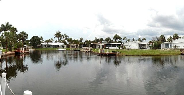 RARELY AVAILABLE 2BR, 2BA WATERFRONT HOME WITH GULF-ACCESS & BOAT DOCK LOCATED IN A 55 COMMUNITY! FULLY FURNISHED. SPACIOUS 16 FT LIVING ROOM W/CANAL VIEWS & SLIDERS TO SUN ROOM, 13 FT KITCHEN W/COUNTER BAR & LARGE PANTRY, DINING ROOM W/WOOD LAMINATE FLOORING & BUILT-IN CABINETRY & HUTCH, FANTASTIC 21 FT RAISED SUN ROOM W/BEAUTIFUL WATER VIEWS, SCREENED LANAI W/PEBBLE CRETE DECKING & BACKYARD ACCESS. PRIVATE DOCK!