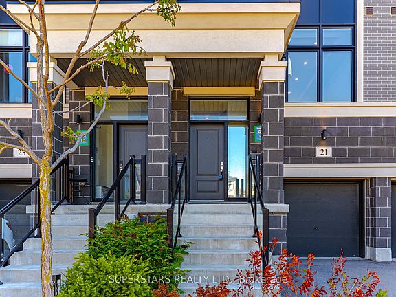Welcome To This Modern Townhouse With Backyard, Offering A Perfect Blend Of Style, Space, And Comfort. Featuring Extra-Large Windows That Flood The Home With Natural Light, This Property Boasts 10Ft Smooth Ceilings With Pot Lights On The Main Floor And 9Ft Ceiling On Upper Level. Enjoy Laminate Flooring Throughout. The Open-Concept Living And Dining Area Is Perfect For Entertaining Or Relaxing With Family. The Upgraded Kitchen Equips With Quartz Countertops, Stainless Steel Appliances, Center Island With Breakfast Bar, And Backsplash. Spacious Bedrooms And Two Full Bathrooms On Upper Level. Professionally Finished Basement, Completed By The Builder, Offers Additional Living Space Perfect For A Family Room, Office, Or Home Gym. New Range Hood. Top Ranking Bur Oak Secondary School. This Home Combines Modern Design And Functional Layout In Prime Location.