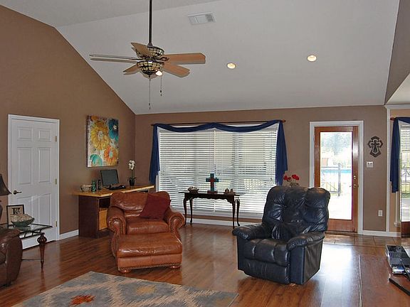 Over 2500 square feet of living area in this compound situated on 1.69 acres (1931 sq. ft. 1st main house and 600 sq. ft. guest house). Additional 20' x 30' workshop and 17' x 34' in ground salt water pool add to the amenities of this country paradise and playground nestled under hundreds of oak trees. There is even access to the developer's private lake for homeowners within the neighborhood. Open floor plan with formal and informal dining, great room with cathedral ceilings, and kitchen with granite counters and stainless appliances. Pool house features additional full bath, game area, kitchen area, and living space.