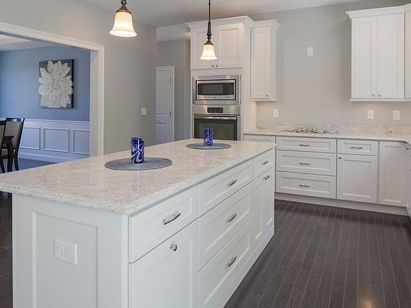 Beautiful New Construction! As you enter into this soaring two story foyer, you'll be welcomed by the open floor plan. Kitchen includes beautiful cabinetry, granite countertops, center island, stainless appliances with professional series 5 burner gas cooktop and wall oven. Large family room with recessed lighting & gas fireplace, dining room highlighted with a tray ceiling and elegant picture frame wainscoting, and study with glass pocket doors. Master suite features recessed ceiling with cove lighting, dressing or sitting room, and bath with double granite vanity, tiled shower, and soaking tub. Easy access to Rt.3. Some features may vary per builder specifications. (Photos are of similar builder home, hardwood flooring color is natural.)