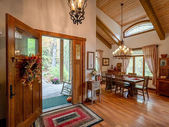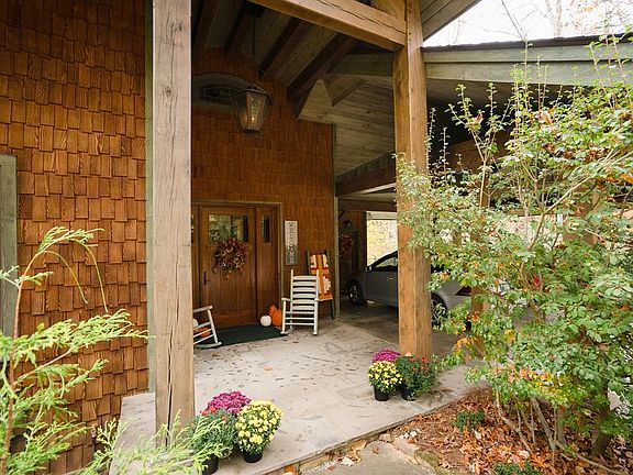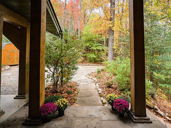 Sited at 3,200 feet of elevation for cool summers, this lodge is a masterpiece of timber frame construction created with white oak, much of which was sourced from the property. Spectacular antler chandeliers highlight the vaulted ceilings. The impressive great room opens through French doors to a wraparound deck. The home chef can be a part of the conversation in the open kitchen, equipped with a gas range, wine refrigerator, a warming drawer, and breakfast bar. Every detail has been thoughtfully designed and crafted, with heated floors in the en suites, a media room with a 5.1 surround sound, and a whole-house lighting system. Gas lamps on the exterior are the ultimate luxury touch. An unspoiled treasure of the Smoky Mountains, Nantahala Lake is a 1,800-acre lake surrounded by federally protected forestlands. The community consists of private, spacious lots which enjoy a common area with boat slips available for use. The lake was stocked with Kokanee salmon in the 1960s which have been naturally reproducing ever since along with a multitude of other cold and warm water species. One of the easiest access locations from Franklin. Sold furnished.
