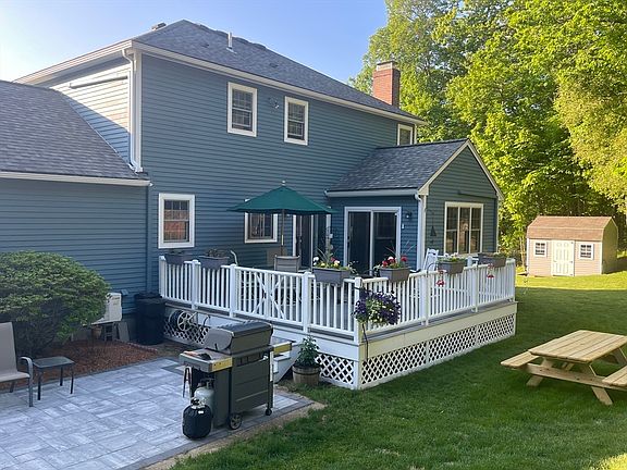 OFFER ACCEPTED! OPEN HOUSE SUNDAY 3/23/25 CANCELED! One of Mendon's most desirable quiet family-friendly neighborhoods is where you will find this charming & meticousley cared for colonial style home.Featuring spacious rooms and abundant natural light, this home is perfect for entertaining and everyday living. Enjoy a generous family room perfect for family gatherings and cozy nights. Charming dining room with tasteful mouldings & flexible living room that could also serve as a home office The kitchen features stainless steel appliances, an island and pantry closet ideal for both cooking and casual dining. The second floor includes the primary bedroom with a private bath with walk-in shower and walk-in closet.Two additional well-sized bedrooms provide ample space for family or guests and another full bath. The large backyard boasts lavish well established perennial gardens, stone walls, irrigation system, new beautiful patio & oversized deck as well as a new storage shed.