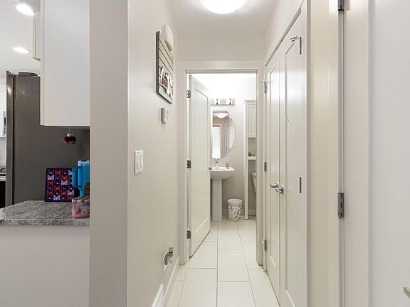 Fabulous 1481 sq ft half duplex in desirable Elements At Aspen Trails! 3+1 bedrooms and 3.5 baths and a double attached garage. Open great room with gas fireplace with mantle. White island kitchen boasts upgraded SS appls, corner walk-in pantry and granite countertops. 2 pc powder room on the main floor. Upper level has 3 spacious bedroom and 2 full baths including a 4 pc ensuite, loft and 2nd floor laundry. Professionally finished basement has 4th bd, FR and another full bath. Central AC. High efficiency furnace and hot water tank. Insulated and drywalled garage. Sunny south backing lot with large deck.