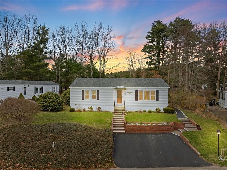 Here is your chance to get into desirable Town & Country Estates! Wonderfully laid out 2 bedroom home sits up off the road and offers wonderful peace and privacy backing up to a cranberry bog. Spacious living room with vaulted ceiling and bay window. Kitchen is light and bright with access to the enclosed porch. The bathroom has upgraded vanity with granite countertop and storage closet. 2 good sized bedrooms and a dedicated laundry room / mudroom with direct access to the enclosed porch. New flooring installed in the bathroom, laundry, hall, dining area and enclosed porch. Town & Country Estates is a 55+ community owned association located on 96 acres. The HOA fee includes water, sewer, taxes, street plowing and on site club house. Peaceful living, yet located within a mile from Starbucks, a grocery store, the Kingsbury Club and the highway. Welcome Home!