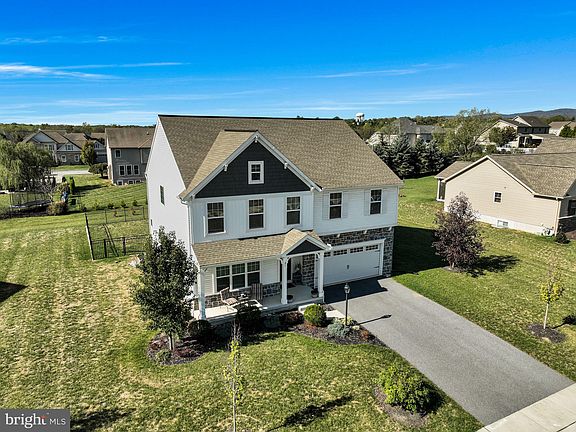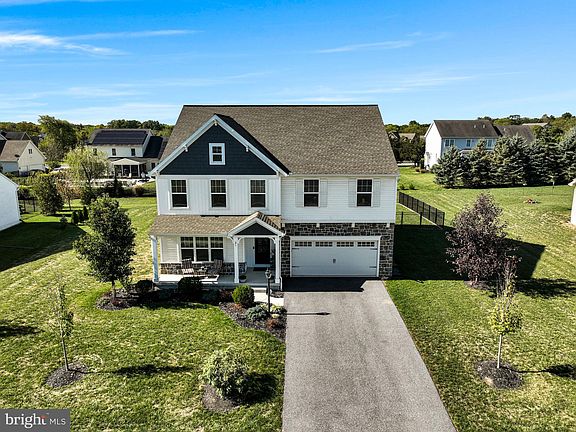 Welcome to this stunning two-story home in one of the area’s most desirable neighborhoods, Meadowbrook Farms! This home is listed below appraised value and still looks brand new! This home is located in Cumberland Valley school district which features a beautiful blend of vinyl siding and stone accents, this 4-bedroom, 3.5-bath home offers comfort, style, and thoughtful design throughout. The main level welcomes you with a foyer, a private office with built in cabinets and an electric remote controled fireplace. Entertain in the formal dining room and spacious family room highlighted by a gorgeous stone fireplace. The gourmet kitchen is a showstopper with a farmhouse sink, awesome GE Café appliances, island with granite countertops, a gas stove and a wonderful walk -in pantry and an additional dining area. Glass sliders open to a patio and a fully fenced backyard with elegant black aluminum fencing. The 2nd floor of this lovely home offers the primary suite which impresses with tray ceilings, a walk-in closet, and a luxurious primary bathroom with a double-bowl vanity, soaking tub, and tiled shower. Three additional bedrooms all with walk-in closets share a full bath with a double-bowl sinks and tub/shower combo. There is a cozy sitting area outside of the bedrooms that provides the perfect spot to relax or read. Now, let's talk about the finished basement which adds even more living space with built ins and enough space for a game table perfect for entertaining or guests. if you get bored you can always go to the exercise room complete with a full bath and a walk in tiled steam shower! From top to bottom, this home blends modern amenities with timeless design for today’s lifestyle. This home comes with a fully fenced backyard and surround sound! Come see this home for yourself,, you will be glad you did! Don't let this one get away!