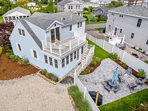 Just two blocks from the sand and surf, this charming seaside retreat offers easy access to Long Sands Beach via a private walking bridge that serves the neighborhood. This home has undergone a thoughtful transformation in every room. The well-appointed kitchen features new granite countertops, flooring and custom cabinetry, setting the stage for memorable gatherings with friends and family. The new open concept design seamlessly blends the dining area, living room, and kitchen, creating an expansive and inviting atmosphere for all. Convenient first-floor living is an option with a spacious bedroom featuring original hardwood floors with a modern full bathroom featuring a custom shower across the hall. Upstairs, two generously sized bedrooms offer both comfort and convenience, and each enjoys refreshing ocean views from their windows. The primary bedroom grants direct access to a second-story patio deck—a tranquil spot for morning coffee or evening relaxation. Additionally, the second floor includes another full bath, ensuring comfort for all. Outside, an enchanting paver patio is perfect for gatherings around a cozy fire pit. You have promised yourself for years you were going to buy your beach house in York. It's time to pull the trigger on that promise then you can start ordering surf boards and beach toys to start on the path of creating cherished memories for a lifetime.