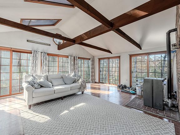Discover versatile living in this spacious home, perfect for large or extended families. The lower level features a complete in-law apartment with its own living room, kitchen, full bath, 2 bedrooms, and laundry—ideal for multi-generational living or guest accommodations. Upstairs, enjoy 3 additional bedrooms, a full bath, and a convenient half bath. Gather in the fireplaced family room with vaulted ceilings, creating an inviting, open atmosphere. The expansive 20x18 sunroom, complete with sliders and skylights, fills the space with natural light and connects seamlessly to the outdoors. A cozy pellet stove ensures warmth and comfort during colder months. This home is truly designed to meet the needs of a growing family and offers a blend of functionality and charm in every room.