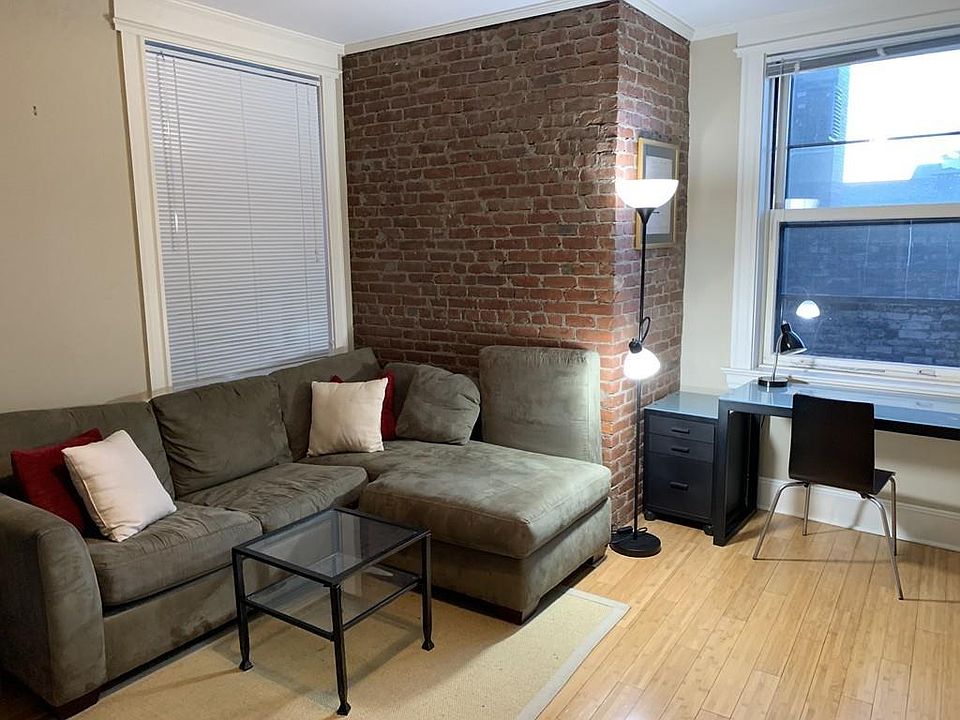 FOR RENT -FURNISHED renovated one bedroom in this gorgeous Luxury concierge building in the heart of Beacon Hill! Convenience at its best- this unit is on an upper level and faces the golden dome of the State House. Bamboo floors throughout, exposed brick, a modern granite kitchen with a breakfast bar. Arched entry with glass French doors leads to the spacious bedroom from living room/kitchen. Bedroom has double closets and leads to a full tiled bath. Laundry/recycling room on every floor with garbage room across the way, amazing views from common roof deck overlooking the Boston Common and State House which are only steps from your front door. Short walk to the Train, restaurants and Beacon Hill shops. Heat, hot water, electricity and basic cable are included in the monthly rent. Once you move in you won't want to move out! Available July 1st