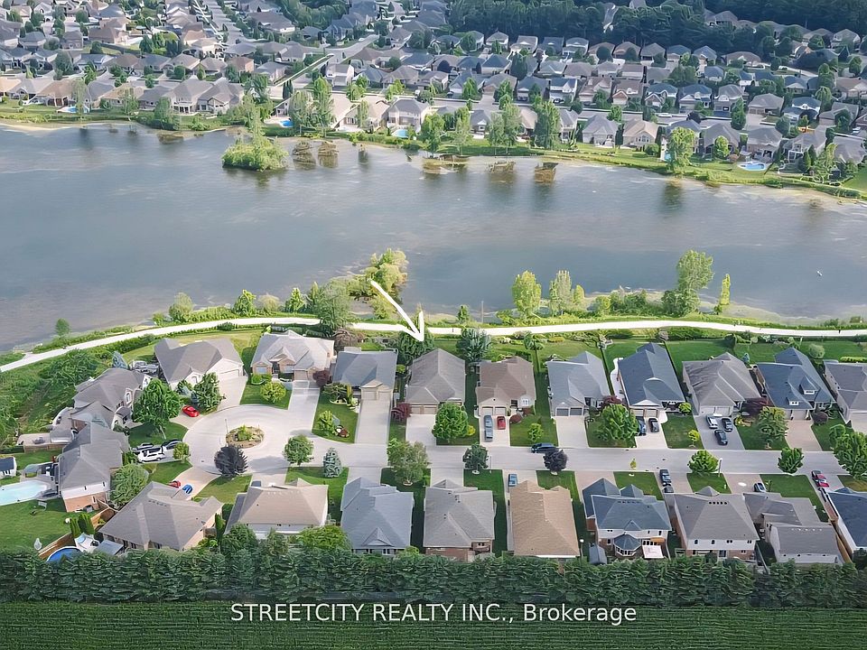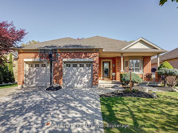 Lakeside Bungalow with Unmatched Views & Trail Access - A Nature Lover's Dream Imagine waking up each morning, coffee in hand, watching kayaks & canoes drift across Lake Margaret-right from the comfort of your great room or primary bedroom. Or spending peaceful evenings under the stars, sitting in the hot tub or gathered around the outdoor gas fireplace beneath a gazebo, wine glass in hand & the sound of nature all around you. This stunning bungalow offers 3,400 sq ft of finished living space & backs directly onto Lake Margaret with a private gate to the walking & hiking trails that lead to Pinafore Park-perfect for daily strolls, runs, fishing adventures & ice skating just steps from your door. Located on a quiet cul-de-sac, this home blends tranquil living with refined design. The main floor features a bright & open concept living room, kitchen, & dining area with rich hardwood flooring and large windows that frame breathtaking lake views. The great room's gas fireplace setup create the perfect atmosphere for relaxing or entertaining, with patio doors opening to your private backyard oasis. The chef's kitchen boasts a large island, updated appliances, gas stove, & extensive cabinetry-ideal for cooking with a view. The primary bedroom offers wall-to-wall custom closet, a sleek 3-piece ensuite, & of course, more views of the lake to wake up to. Two additional main floor bedrooms & a 4-piece bathroom with a jetted tub offer comfort for family or guests. The fully finished lower level is built for entertaining or multi-generational living, featuring a full second kitchen, large family room with another gas fireplace, a rec room with pool table (included), & an "other room" currently used as a 4thbedroom.Step outside to a two-tiered deck, landscaped pond, and a beautifully designed outdoor living space complete with gazebo & gas fireplace-all overlooking the water and framed by mature trees and trail access. This is more than a home-it's a lifestyle!
