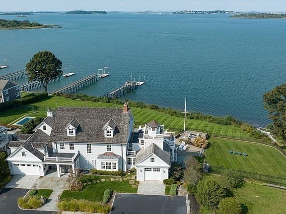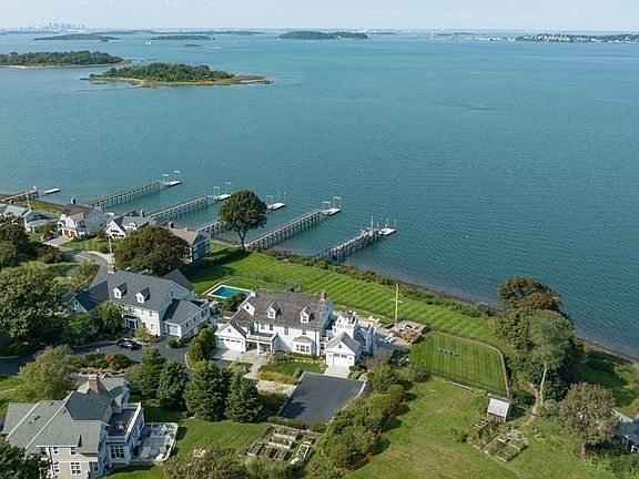Stunning waterfront estate with over 8000 SF of living space on a fabulous 1.4 acre lot with expansive lawn space, gunite pool, deep water dock and 150+ feet of direct water frontage. Enjoy breathtaking sunsets and mesmerizing views of Boston skyline from the expansive decks and poolside patios. Walk down to the 200 foot dock for easy access to all your water toys or commute every day from your own backyard to Boston. The owner has transformed this gracious turn of the century home with spacious, well proportioned rooms, 9' ceilings and period details throughout during their ownership. There are 4 floors of living space with amazing views from all, including the fabulous lower level with great room, wine cellar, media room, and poolside kitchen with pizza oven! There are only a few homes in Hingham with over an acre of land and direct water frontage. One of Hingham's finest!
