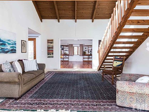 Great opportunity to move into coveted Fearrington Village! Vintage contemporary features soaring ceilings, open stairway, main floor owner suite, 24x16 bonus w/gleaming hardwoods -- perfect for grand piano or pool table! Tucked back on a private, treed, level lot w/nature views from deck & thru big windows. Stroll thru the village & enjoy the Fearrington ambiance. NOTE -- this home is a diamond in the rough. Needs work -- seller doing no repairs. Great for investors or buyers looking for a project!