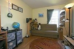 Rare find 2 bedroom plus den end unit ranch with private fenced backyard. Upgrades galore including tiled bathroom with whirlpool Jacuzzi, ceramic floors, laminate, neutral colors paint, additional room has French doors and could be used as a 3rd bedroom, playroom or an office.Plenty of storage, finished attic.