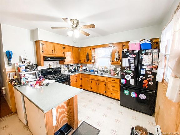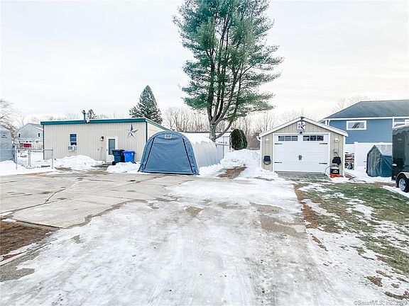 Welcome home! This adorable one level ranch is easy living! 3 beds & 1 full bath. Beautiful hardwood floors in all bedrooms and living room. Vinyl windows & vinyl siding. Great level back yard with ALL the extras! OUT buildings galore!1 very large detached garage/ barn with electricity plus another movable 1 car detached garage. Ample parking ! 2 car ports & 2 sheds included! Generator and hot tub included! The home also has a new oil tank and new electrical panel! City sewer & private well. Easy living.