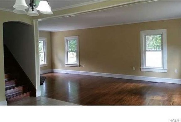 Town Of Montgomery Farm House Beautifully renovated farm house in the Town of Montgomery with almost 2 acres of beautiful land, with stream. Large fenced in lawn that leads to the wooded area. The living room has a great brick fireplace and shiny hardwood floors. Kitchen is brand new, has new stein less steel appliances and leads to a 3 season room and the gorgeous yard. Office/den on the first floor with new carpet and updated half bathroom. Dual staircase to upstairs bathroom and three bedrooms. Quaint updated old charm. Gorgeous wood trims and hardwood floors. Central air.