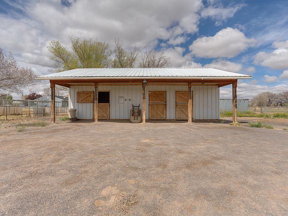 Beautiful, park-like equestrian property on almost 2 acres in highly desirable Berry Hill Farm. Northern NM design with bright, open living, dining and kitchen area. French doors to expansive covered patio. Views of Monzano Mtns overlooking sprawling horse facilities. 720 sf Stable w 3 stalls, large tack room, hay storage for 150 bales, water, electric and two corrals. Feed horses from irrigated pastures. New carpet and freshly painted. This amazing home features vaulted ceilings, natural light, open living area, large master, walk-in closet, stainless refrigerator, large pantry, Corian Kt counters, high efficiency Lopi wood burning stove, separate dog and cat kennels, one household and one irrigation well, large storage shed. Ride the ditches or trailer horses to Monzanos, just 10 Mi.