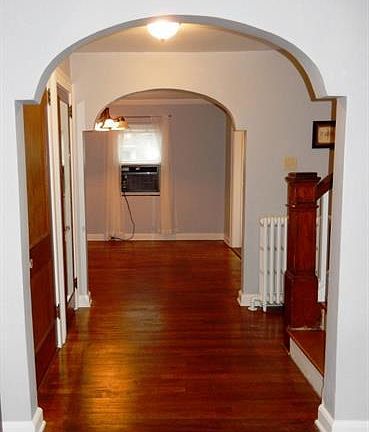 Loaded with old world charm, this three bedroom, 1.5 bath solid brick colonial mixes old with new updates perfectly! Chat with your neighbor from your covered front porch a perfect place for your comfortable patio furniture a cup of coffee and morning paper. Larger than it looks and move-in ready! This home boast loads of natural light, charming arched doorways, crown moldings and hardwood floors. The chef in you will enjoy the recently updated kitchen with plenty of crisp white cabinetry, loads of new countertop space, appliances, new flooring, new stainless steel double bowl sink and faucet and convenient pantry. Enjoy holiday dinners with the family in the formal dining room with updated chandelier and hardwood floors. The spacious living room features a floor to ceiling brick fireplace and plenty of room for your favorite comfy couch and TV. Steps away is the door to the newer deck and level rear yard. Upstairs you will find a full bath with tub-shower combo, ceramic tile floor and tub surround. You will also find three spacious bedrooms with plenty of closet space. The master bedroom has two closets, one large walk-in closet and dormer window seat with storage. Perfect play room or man cave! The updated lower level has a freshly painted game room with new carpet. The HUGE laundry and storage room has a washer and dryer included and double laundry sink. There's also a convenient updated lower level half bath and walk-out basement. Other features of this solid brick home include: updated windows, covered 13x6 deck, new concrete walk-way to rear yard. Located on a quiet cul-de-sac street in Baden. MUSTSEE!