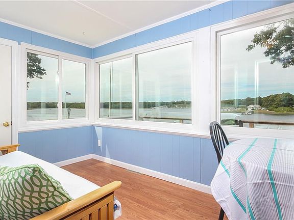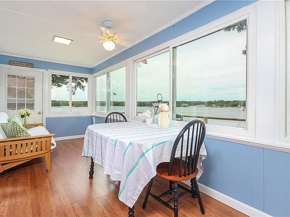 Beautiful water views and a deep water dock make this sweet summer cottage the perfect getaway. Tucked towards the end of the street this quiet location makes you want to sit on your deck with a cup of coffee or a cocktail and watch the boats sail by. If you prefer something livelier hop on your boat with friends and family and take a quick jaunt to Block Island or Newport or take the kids out tubing or water skiing. Whatever you prefer the private enclave of Harbour Island has something for everyone.