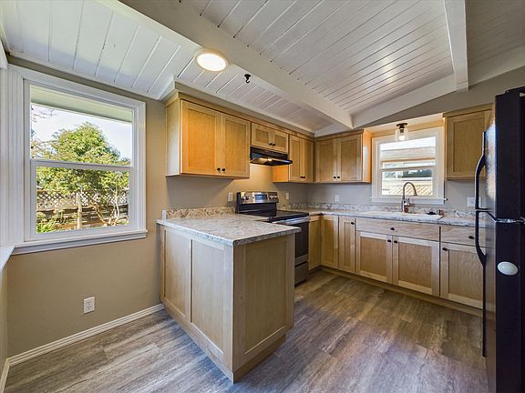 Coveted Sunny Brae! Inside this beautiful home, you will find gleaming hardwood floors, updated windows, a newly redone kitchen with gorgeous custom maple cabinets, accented with new counter tops and flooring. The single car original garage has been converted to additional living area and an oversized two car garage was added. Plenty of off street parking available. Good size corner lot centrally located within walking distance of the market, coffee shop. bus and other locations. Make sure to see this very well maintained and comfortable home.