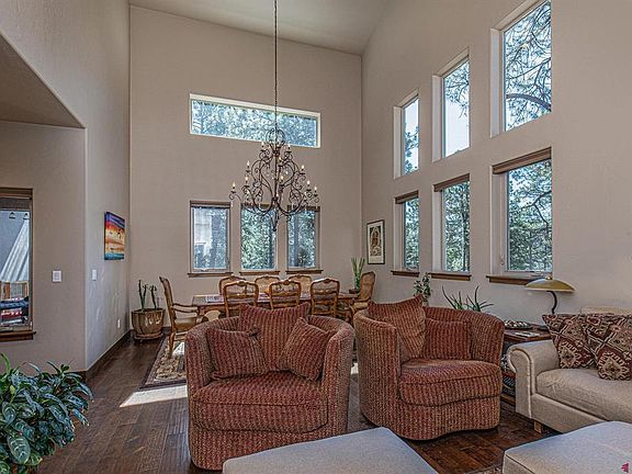 Located in the desirable Edgemont Highlands neighborhood, this meticulously maintained 4-bedroom home built by Tailor Made Custom Homes offers the quintessential Colorado experience from the moment you step inside with an ideal floor plan and luxury finishes. Attention to detail is apparent with the beautiful engineered wood floors leading you into the living and dining areas with vaulted ceilings and a wall of windows bringing in plentiful natural light while showcasing the surrounding pines, and floor-to-ceiling stone fireplace as the great room's focal point for large gatherings or a cozy evening at home. The gourmet kitchen features custom designed cabinets with glass insets, granite countertops, breakfast bar with a brick accent wall, farm sink, pantry with pullout drawers, 6-burner GE Cafe gas range with griddle, GE range hood, refrigerator and microwave, and a Maytag dishwasher. Entertaining is easy with sliding doors leading you to an exterior courtyard space, sheltered from the elements with views of the surrounding pines. The functional floor plan also offers a main level primary suite, an additional half bath with glass vessel sink, and mudroom/laundry room with built-in storage leading you to the oversized 2-car garage, perfect for all of your gear. The second level of the home hosts two bedrooms with a full bath in between, as well as a large 4th bedroom which easily functions as bonus/game room, home office, or guest quarters with generous closet and storage space. Other features of the home include air conditioning, tankless on-demand water heater, high efficiency furnace, an oversized 2-car garage, and a large concrete driveway with extra parking spot on the side of the house. Encompassing over 500 acres, of which almost 200 acres is devoted to open space, the Edgemont Highlands community is located just five miles from downtown Durango and features private access to over 1.5 miles of Florida River hiking and blue-ribbon fishing, a beautiful Community Center just a short walk away, and over ten miles of private hiking and walking trails, including the Pioneer Trail on the far western end, providing bicycle friendly direct access to the National Forest.