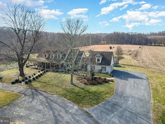 TRANQUIL & PEACEFUL PARADISE waiting for YOU! Come experience this remarkable farm situated on 65+ acres. The main farm and (2)-2 acre lots deeded separately. Stepping into this wonderful Cape Cod home you will find beautiful hardwood floors through out the first floor and an open floor plan. A kitchen with double oven, an island and stainless steel appliances. The living room is spacious with a mountain stone gas fireplace. There is a first floor Primary Br with full bath and Lg walk-in closet. The second floor offers 3 spacious bedrooms with walk-in closets. Moving to the partially finished basement and you will find 2 more Br's and an office and an entertaining area. But wait, there's more! Step outside to a wonderful inground pool, a historic bank barn with horse stalls, elec & water, an additional metal pole building, also two additional sheds for poultry, a large pond and a playhouse. Sit back and enjoy the wildlife as they sip water from the spring fed pond or take a walk through the many trails cut into the wooded area of the property. Don't forget about the extra large pavillion made for entertaining. This is a MUST SEE PROPERTY!