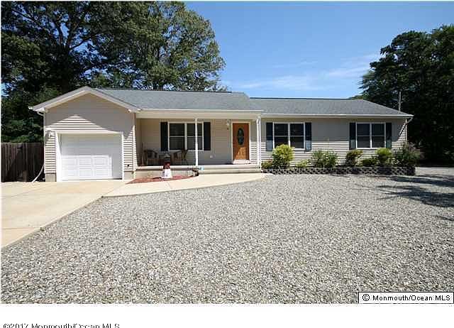 Newer ranch in the desirable Holly Park section of Bayville just blocks to the bay. This home offers hardwood floors, a large and open eat in kitchen with a slider to the back yard, large bedrooms including a master suite with tub and shower, vaulted ceilings in the living room, a mud room with laundry leading in from the garage, an open front porch, over sized driveway and plenty of closet space. This home is tastefully painted and very well kept, completely turnkey. Conveniently located in a quiet family friendly neighborhood, this home is worth a look today. No flood insurance required.