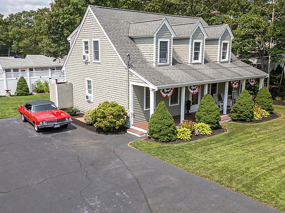 Indulge in all of the tranquility that Popponesset has to offer inside this 3 bedroom 2.5 bath cape style home with a beautiful farmers porch just a few steps from the beach. Inside you'll be greeted by cathedral ceilings and a cozy gas fireplace in the living room that opens into your recently updated kitchen/dining room and has a nice family room located at the back of the house. On the first floor you will also find your main bedroom and main bathroom with an additional half bath for guests and first floor laundry. Upstairs you have 2 additional bedrooms and your second full bathroom with your office/loft that overlooks the living room. The basement also offers high ceilings with potential for expanding the homes living area. This home offers the comfort of a whole house generator that is a year old, an outdoor shower, garden area and privacy fence from your neighbors. After your beach day take a short drive to the marketplace for food and entertainment; this home offers everything.