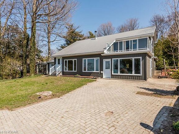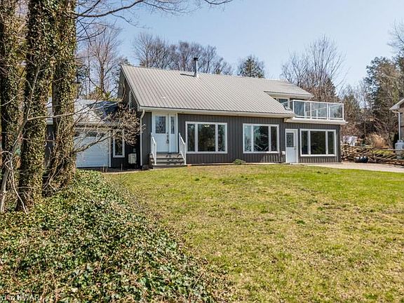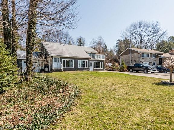 This WATERFRONT beautifully well maintained 3 bedrooms + den, 2 bathroom home with a very private wooded backyard. The primary bedroom has a roof top walk out balcony with spectacular views of Lake Huron. High ceilings, loft style full of cottage charm with lots of large windows and natural light. Main floor laundry, 2 family living rooms, mostly carpet free and the garage has ample storage. Wood fireplace & a ductless heating and cooling wall unit system. Central Vacuum is set up. Metal roof has a life time warranty. Deep front yard with a garage and double car driveway fits 10+ vehicles. Recent Updates: Windows 2011, Doors 2011, Balcony 2011, Vinyl Siding 2011, Bathroom 2011, Flooring 2011. Come see and make this your dream home, book a private showing today! Great investment property!