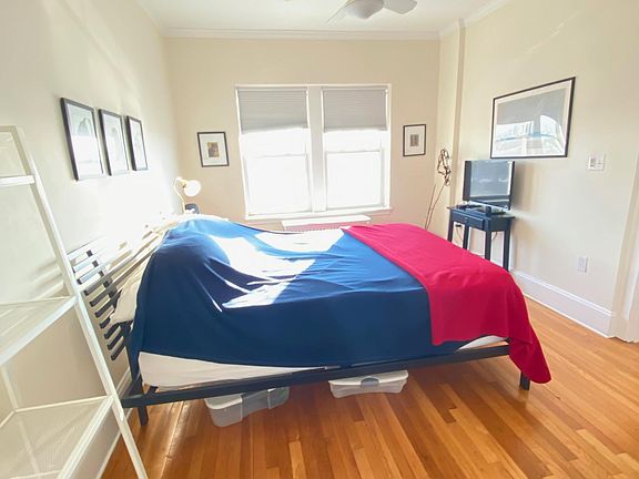 Top floor (fifth) corner unit in a small brick condominium building, this one bedroom unit boasts: - Hardwood floors, high ceilings, lots of windows and Sun-drenched. - Galley kitchen with gas range, full sized fridge, small dishwasher - App operated Laundry unit on the same floor and each floor of the building - Heat, WiFi and one deeded parking spot included in the rent - Cats are welcome - Building has a Gym and a Bike storage room.