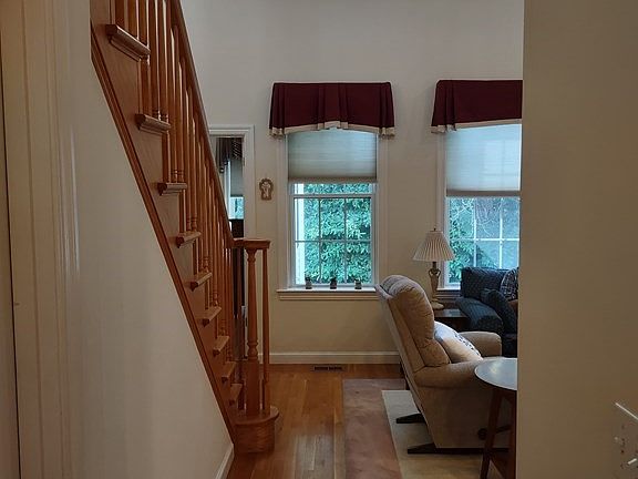 Walk along the stone walled lane and gardens. Enter and then sit on your private deck enjoying the seclusion offered by the woodlands and hidden lawns to the rear. This spacious single-family home has it all. A first-floor master bedroom, a corner fireplaced family room, gleaming hardwood floors, a formal living room or private office, and a formal dining room. Upstairs is reached via an open staircase along the family room wall. It offers additional living space with its second bedroom and full bath, and a sitting-area useful for office or crafts overlooking downstairs. This home is amazing. Better get ready to move in.