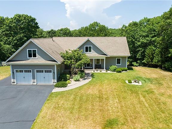 A hidden treasure in this craftsman style cape. Close to downtown and beaches with total privacy abutting state land. Great open floor plan - custom gourmet kitchen with eat-at center isle, pantry, and granite counters, dining room/living room combination with vaulted ceiling and skylights with Atrium to a large deck overlooking private level yard with picturesque stone walls. Main floor master suite with large tile walk-in shower. Two generously sized bedrooms on the 2nd floor along with an open loft and huge bonus room. The lower level is partially finished featuring a family room with atrium to stamped concrete patio. Well established gardens. Beautiful trails to pond with bridge and a great treehouse!