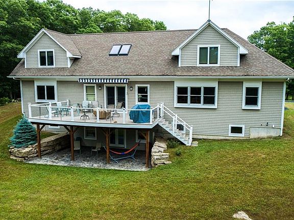 A hidden treasure in this craftsman style cape. Close to downtown and beaches with total privacy abutting state land. Great open floor plan - custom gourmet kitchen with eat-at center isle, pantry, and granite counters, dining room/living room combination with vaulted ceiling and skylights with Atrium to a large deck overlooking private level yard with picturesque stone walls. Main floor master suite with large tile walk-in shower. Two generously sized bedrooms on the 2nd floor along with an open loft and huge bonus room. The lower level is partially finished featuring a family room with atrium to stamped concrete patio. Well established gardens. Beautiful trails to pond with bridge and a great treehouse!