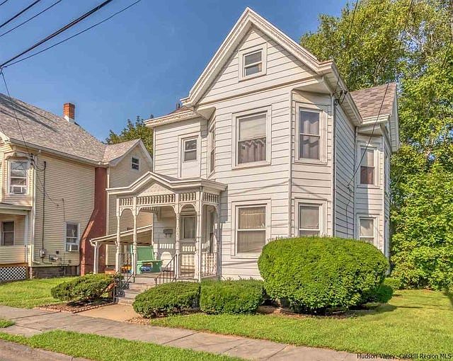Do not miss this traditional two story City of Kingston home in a great location! Hardwood floors and great character abound in this 3 bedroom 2 bath home. Stay cool in the summer with central air and warm in the winter with natural gas fueled force air. The replacement windows will help make it energy efficient year round. Pocket doors line the entry way to the formal dining room which also has a built in china closet. Enjoy cooking with plenty of counter top and island space. The first floor bathroom doubles as a laundry room with an additional utility sink. The upstairs bathroom has a claw foot tub to soak after your long day. Three good size second floor bedrooms and a walk up attic for storage complete this fine house .Low maintenance, fenced in back yard with patio and a one car garage. Part of the driveway has a carport to provide shelter from the weather. Located a block from the newly redesigned Broadway corridor. Walking distance to two hospitals, Kingston High School, retail and restaurants.