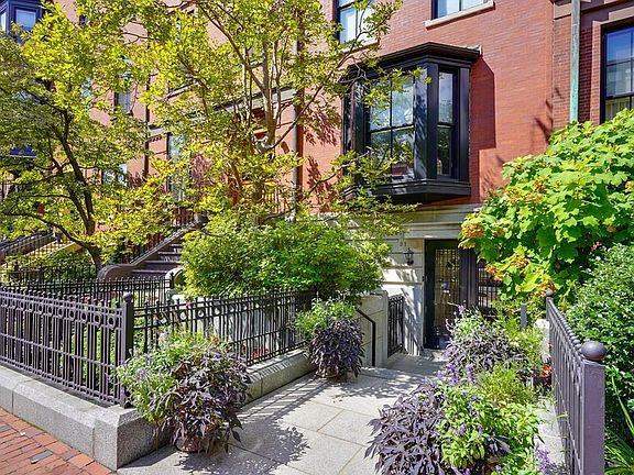 With its premier location along a beautiful tree-lined street on the flat of the Hill, the magnificent one-of-a-kind 5+ story single-family townhouse @ 21 BRIMMER STREET is now available. This spectacular 4-bed/3-bath residence features an ELEVATOR serving the 5 full levels, 5 fireplaces w/decorative mantles, library w/English brown oak finishes, grand foyer/staircase, custom millwork/crown molding & high ceilings throughout, solarium w/Japanese garden, spacious roof deck & breath-taking CHARLES RIVER VIEWS. The residence offers 2 fully-applianced kitchens, 2 laundries, 3 wet bars & 2 additional half-baths. Key features incl: hardwood & marble floors, central air, humidity control system, alarm, central Bang & Olafsen sound system, dramatic skylights, large cedar closet, climate-controlled wine cellar & radiant heat marble flooring. New foundation piles/underpinning & reconstructed front/rear walls completed circa 1985. Purchase includes 1 valet parking space at BRIMMER STREET GARAGE.