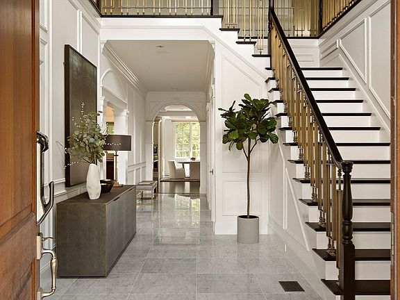 This Newton residence is truly one of a kind, blending elegance with everyday comfort. On the main level, radiant marble floors connect the living room, dining room and office, where black accents, gold lighting, and copper railings create a refined yet welcoming atmosphere. The second floor features four spacious bedrooms, each equipped with a private bathroom and custom-built closets, designed for effortless living. An in-home elevator makes every floor easily accessible. The finished lower level is perfect for both entertaining and relaxation, with a sleek bar, guest suite, and private theater. Step outside to a level backyard with a full outdoor kitchen and patio, ideal for summer gatherings or quiet evenings with family. Lightly lived in and cared for, this home feels nearly new and offers sophistication and livability in Newton.