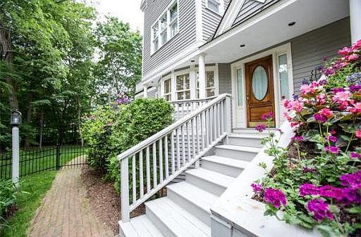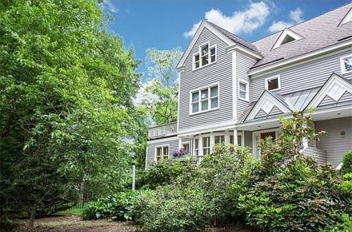 Spectacular sun splashed townhouse in desirable Dana Hall area offers custom details throughout. This stunning, meticulously maintained property includes generous living spaces and provides flexible floor plan. Marble foyer opens to elegant living room with fireplace and picture windows. Handsome den with custom built ins leads to deck overlooking private yard and grounds. Renovated kitchen includes top of the line appliances, granite counter tops and offer plenty of storage. Sophisticated dining room with fireplace provides exterior access to deck. Master suite with designer finishes includes balcony, walk in closet and luxurious spa like full bathroom. Third floor bonus guest suite with full bathroom, kitchenette, sitting area and generous built ins provides a private oasis. Lower level library and wine cellar complete this magnificent home! Close to town, train, shops and the Brook Path. A must see!