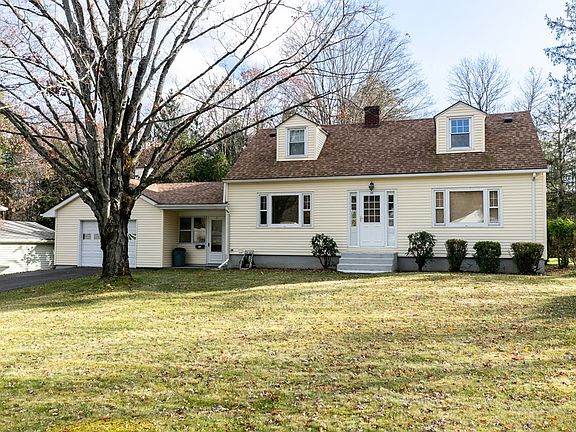 Lovely Cape Cod on a quiet dead end street! Nice step saving kitchen w/appliances & dining area, a good sized living room, 2 bedrooms & bath on the 1st floor & 2nd floor has two spacious bedrooms & loads of storage. New roof on house 2020, new furnace & central air 2021 & new hot water tank & electrical service 2023! You'll LOVE the enclosed patio w/skylight & breezeway leading to an oversized garage & the partially wooded lot extends way past the tree line, it's approximately a 3/4+ acre lot! Plenty of room in the basement to finish if your heart desires, move quickly before it's too late!