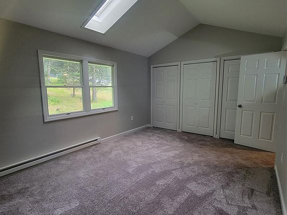 Primary bedroom has vaulted ceilings with a skylight. Eat-in kitchen features white cabinets, brand new stainless steel appliances and hardwood floors. Enjoy cozy nights in the oversized Family Room by the wood burning fireplace which walks out to the screened in porch. Deck wraps around back and right side of home. Living Room has vaulted ceilings with skylight and wood burning stove. Hardwood floors throughout the main living areas. Brand new roof, windows, ceiling fans and light fixtures. All four bedrooms have new carpet. 2 Full bathrooms with bathtub. Washer & dryer hookups installed. Central air ductwork and vents installed.