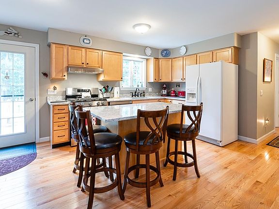 You'll love this updated dormered Cape with its fully applianced kitchen, walk-in pantry, Cambria quartz countertops and island. A sun filled living room, office/den, and a 1/2 bath (with washer & dryer) round out the first floor. Upstairs is the primary bedroom with a walk-in closet and 3/4 bath, 2 add'l bedrooms plus a full bath. The heated basement has been waterproofed by Busy Dogs, offering a transferable warranty and is begging to be finished. Updates include: red oak flooring throughout the 1st floor, whole house Guardian 20KW Generac generator, 4 mini-splits, s/s LG convection gas range, s/s dishwasher, and seamless house gutters in 2020...IBC boiler was added in 2021. The 24x24 detached garage was constructed in 2020 and will accommodate all of your "toys". Relax on the deck overlooking a peaceful yard. Stone walls grace this 3.69 acre double lot. Country living just minutes from the Peterborough center, Hospital and major routes. Subject to Sellers securing suitable housing.