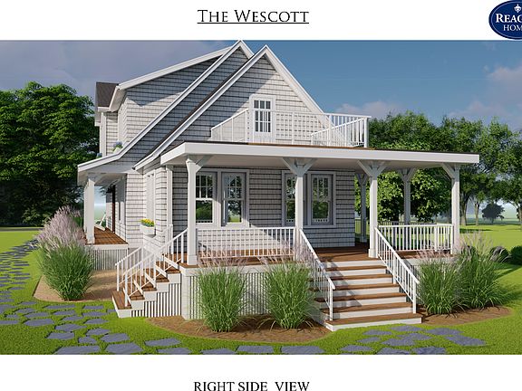 The Westcott features a master suite with walk-in closet on the first floor. There are two covered porches, one on the right side off the great room and one in the front into a vaulted foyer. There is a deck on the second floor off of the third bedroom. The 3,610 square feet includes the space above the garage finished. This kitchen features a huge island with pantry. We can customize to what you want.