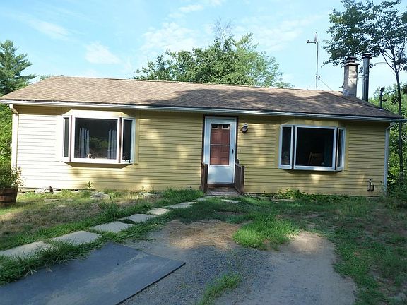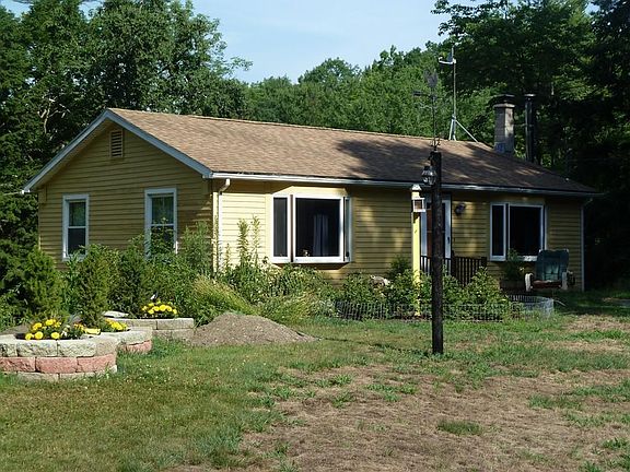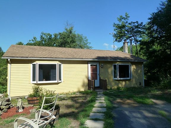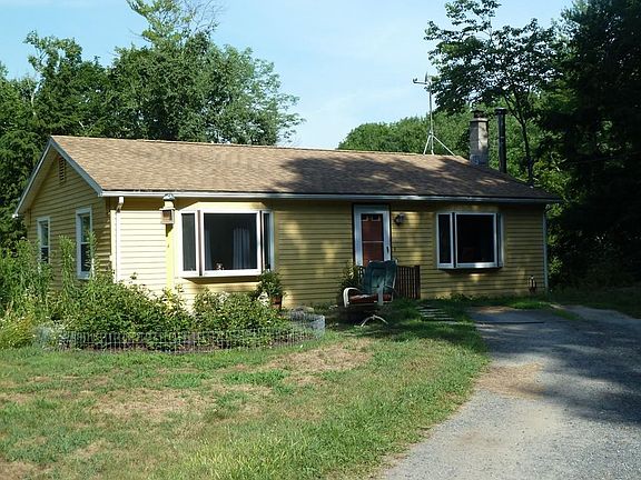Private little get away if your starting out or down sizing and want to be away from it all yet close to major routes, this 2 bedroom 1 bath ranch house with a full basement may just be the house. Some updating and cosmetics needed. Carpet original throughout. Roof new in 2005, Furnace 94, hot water heater 2006, insulation updated and vinyl windows all newer. One level ranch with full open basement tall ceilings could easily be finished. Large back deck . Full bath with sky light. Wonderful natural light through out. Woodstove in living room owner will leave almost 8 cords of wood. Nicely landscaped plenty of room to gardens. Appliances to remain (not washer it is not working correctly). Generator to remain as well. Wonderful space for gardens, plenty of room to add a garage if you want one.