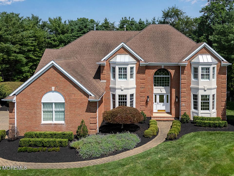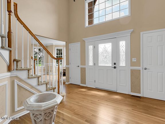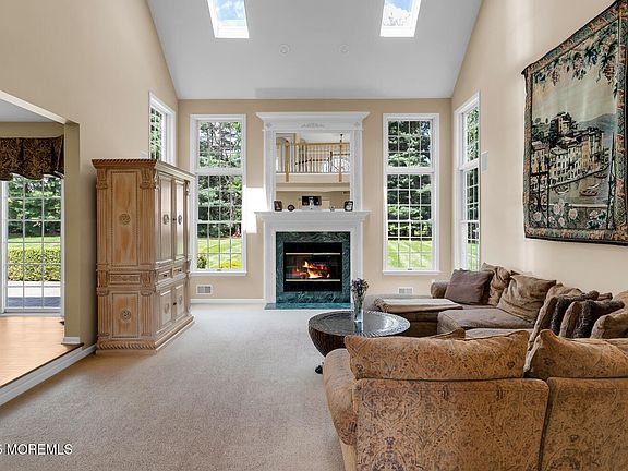 Welcome to this exceptional colonial home in the heart of Champions Run, one of the Freehold Township's most desirable neighborhoods. Offering over 3,700 sq ft of elegant living space plus a fully finished basement and 3 car garage, this residence combines timeless charm with thoughtful upgrades throughout. A grand two-story foyer sets the stage as you enter, leading to a dramatic, sun-filled great room with soaring ceilings and a gas fireplace perfect for both relaxing and entertaining. The chef's kitchen has been updated with brand new stainless-steel appliances, offering ample space for cooking and gathering. While the formal dining room, living room, and home office round out the well-designed first floor. Upstairs, the spacious primary suite is a private retreat featuring cathedral ceilings, a cozy fireplace, dual walk-in closets, and a spa-like ensuite bathroom. Three additional bedrooms are generously sized, each with custom built-in closets. The fully finished basement is tailored for entertainment and lifestyle. Enjoy a 500+ bottle climate-controlled wine cellar, a dedicated home theater with a 120" HD screen and in-wall surround sound, and a private gym. Additional highlights include refinished hardwood floors, smart Lutron lighting, fenced in backyard, and a beautifully landscaped .62-acre lot with endless possibilities for outdoor living. This meticulously maintained home offers the space, features, and location to truly have it all.