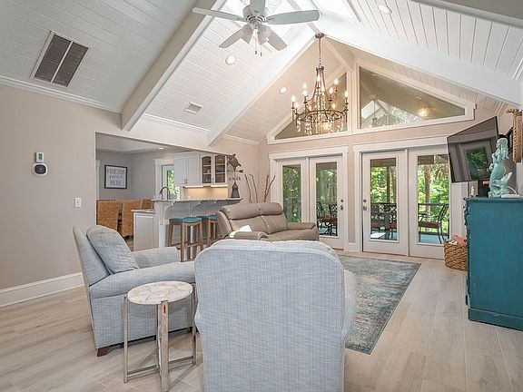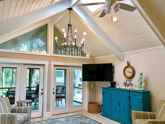 Completely remodeled 4 bedroom, 4 bathroom home on oversized 3rd row lot in Sea Pines. Large open living space and eat-in kitchen are upstairs, along with the master suite and 2 guest bedrooms. An additional family room and bunk room can be found down stairs with access to the new pool! Outdoor living spaces include screened in porch off of the main living room and balcony off of the master suite. Everything is new - including the spray foam insulation, roof and pool. Close to the back gate of Sea Pines with access to all of the amenities. Great primary residence or investment opportunity.