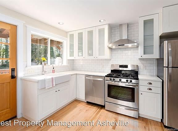 Cozy West Asheville Bungalow - This 2 bedroom and 1 bathroom bright bungalow is clean and crisp and ready for new tenants to love living here. Completely renovated with new appliances including a gas stove in the eat in kitchen and a fun farmhouse sink, new bathroom with subway tile, cool hideaway stackable washer and dryer, built in shelving, and shining hard wood floors. Walk to Malvern Hills Park, Haywood Road and the library! Huge yard and nice back deck and sitting front porch for relaxing. Big basement for storage or hobbies. NO SHOWINGS UNTIL 1/7/2020, EMAIL KRIS AT krisatnestrentals@gmail.com 2 Bedrooms 1 Bathroom Living Room Front porch Back deck Storage Stackable washer/dryer Central air and gas heat (RLNE4625580)